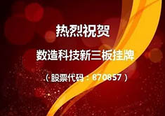 查看更多2017年1月23日,上海數(shù)造機(jī)電科技股份有限公司在全國(guó)中小企業(yè)股轉(zhuǎn)系統(tǒng)(新三板)獲準(zhǔn)掛牌,證券簡(jiǎn)稱(chēng):數(shù)造科技,證券代碼:870857。